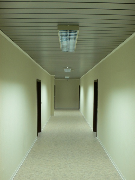 Die abgehängten ORIGINAL DOBNER Aluminium-Paneeldecken eignen sich besonders hervorragend für Flure!