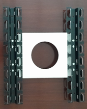 Lampen, Lüftung, Sprinkleranlagen, etc. können mit systemkonformen Zusatzmodulen in die Decke integriert werden. Zusatzmodule und auch Revisionstüren müssen separat abgehangen werden. Zusatzmodule werden im Modul 200, 184x184 mm und Modul 300, 284x284 mm mit separaten Tragschienen geliefert. Loch Maße werden vom Kunden vorgegeben. Revisionstüren können mit Nonius-Abhängern oder Gewindestangen auf jeder Ecke montiert werden.Planheit im Randbereich