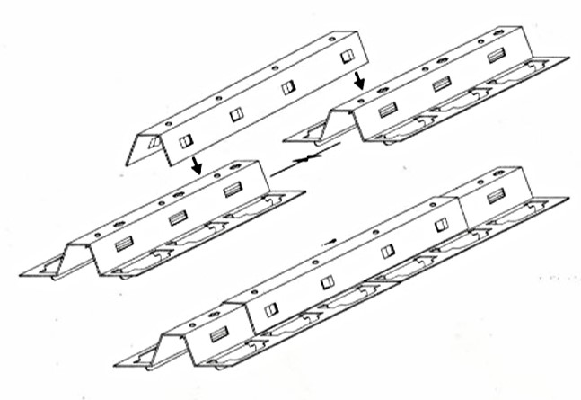 Die Längsstöße der Tragschiene werden durch einclipsen des Tragschienen-Verbinders stabil verbunden.