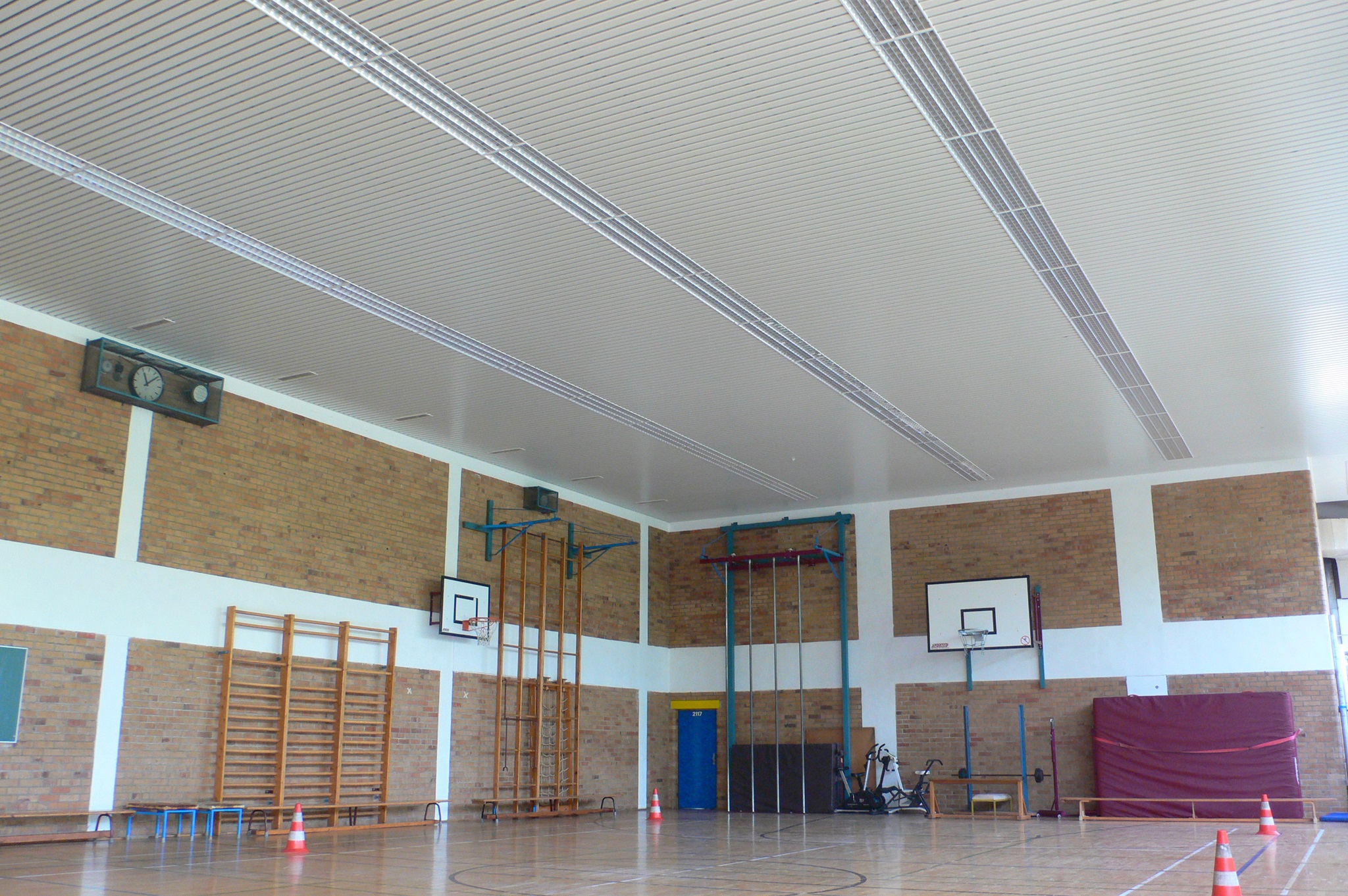 Die extrem strapazierfähigen, robusten, ballwurfsicheren, abgehängten ORIGINAL DOBNER Sport-Paneeldecken aus hochfestem Stahl